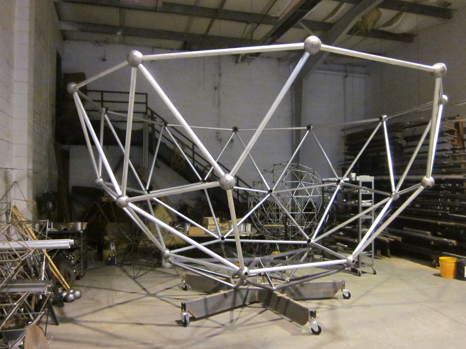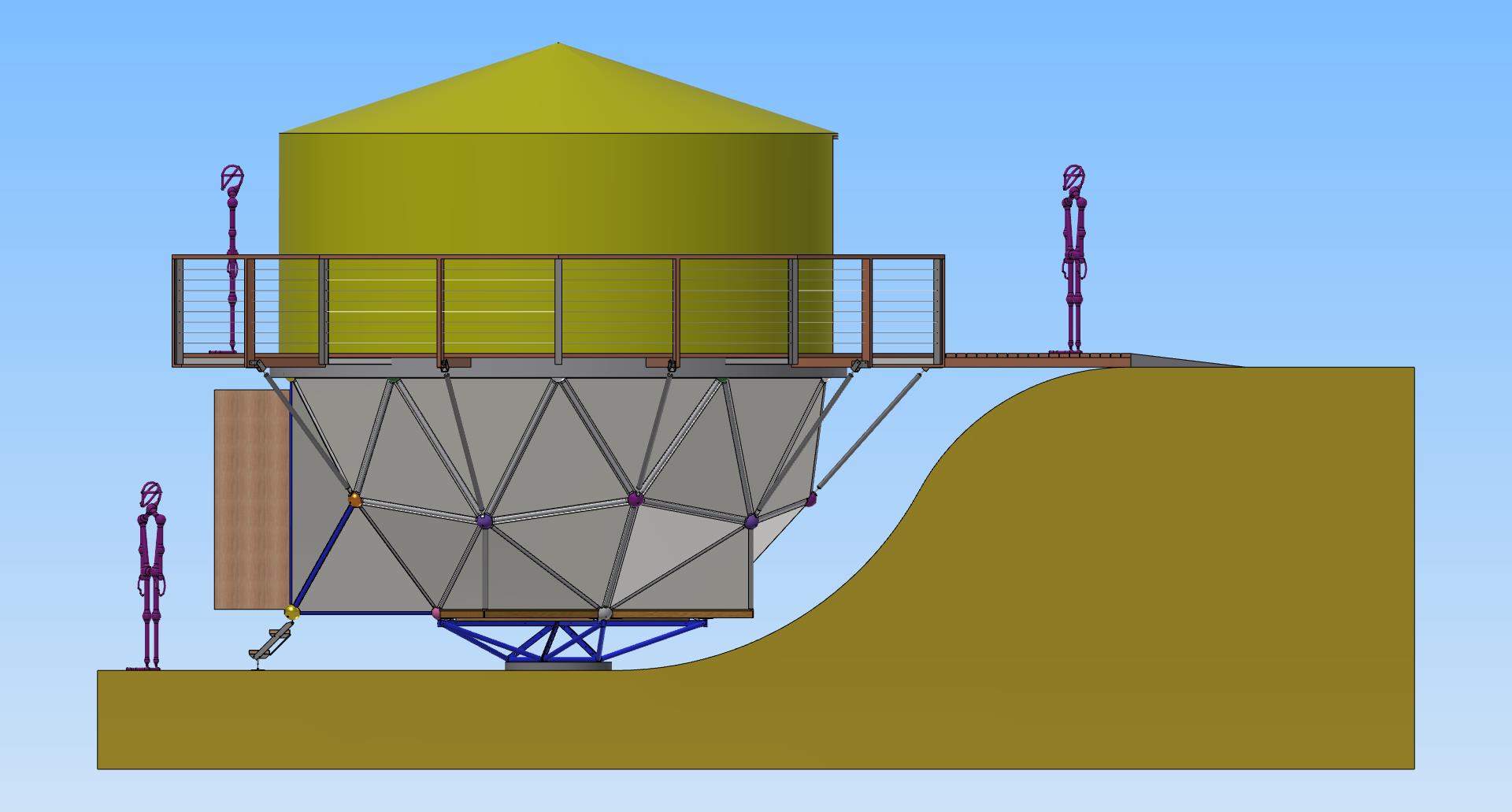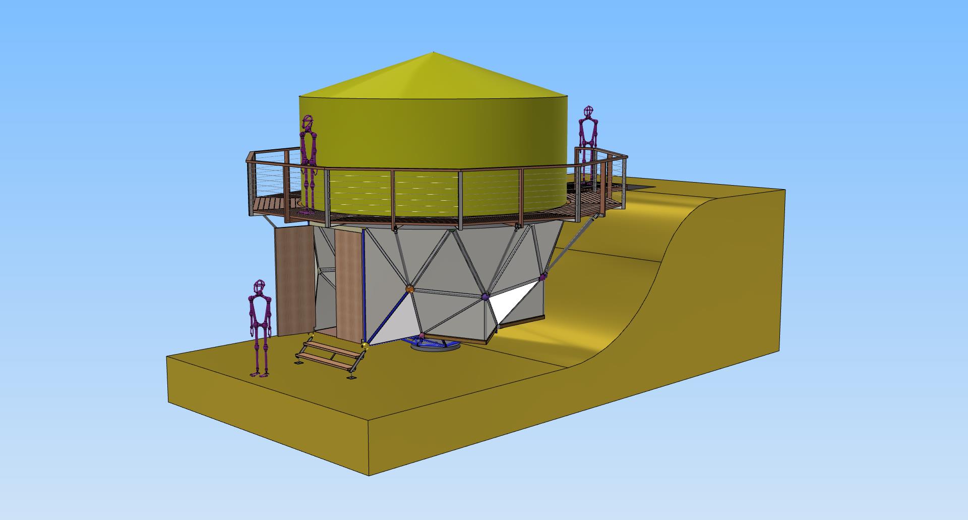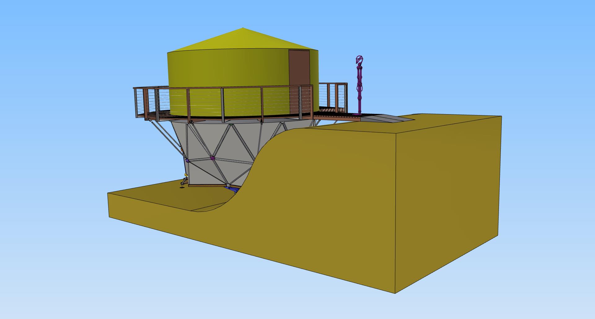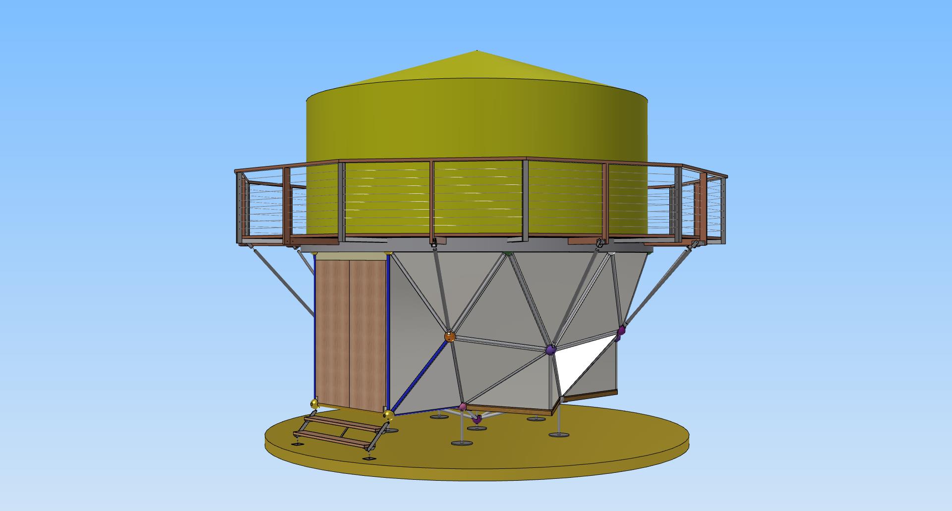 My building system, “the sphere of OZ”, a tool that I have conceived and designed for erecting a geodesic sphere is eminently suitable for a construction of most any other type of a building/structure. One among them is a “dish”, an inverted geodesic dome, designed to serve as a foundation/platform to carry a yurt, a “glamping” dome or a tent, and it is intended especially for an environment where the terrain is uneven, hilly or wet, under which conditions the current/conventional wood platforms/decks are usually more hassle and expense than the yurts them selves, while the dish is simultaneously providing an additional living, storage, utility space. There will be no need for a ground clearing, excavation and on site construction work to install the dish foundation/platform other than making room and anchor it by means that will be determined during the design stages.