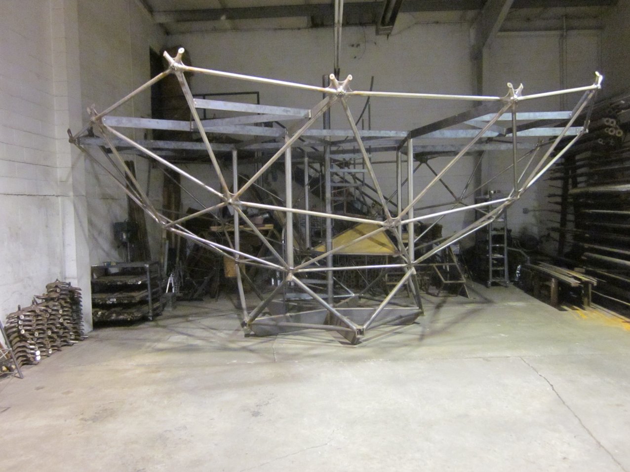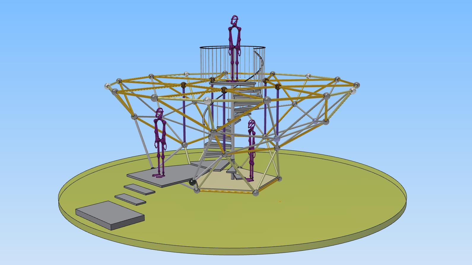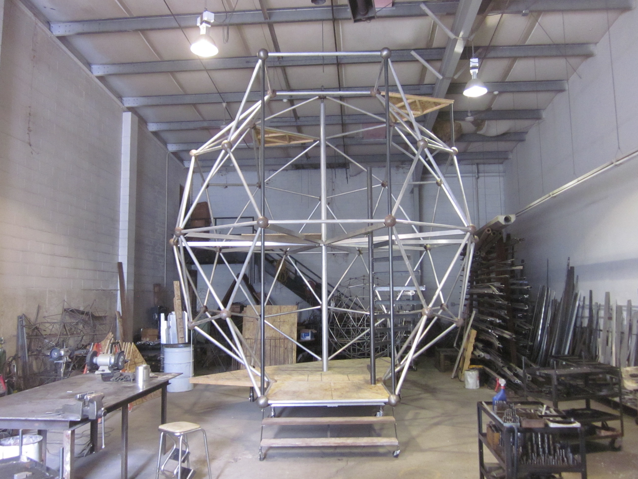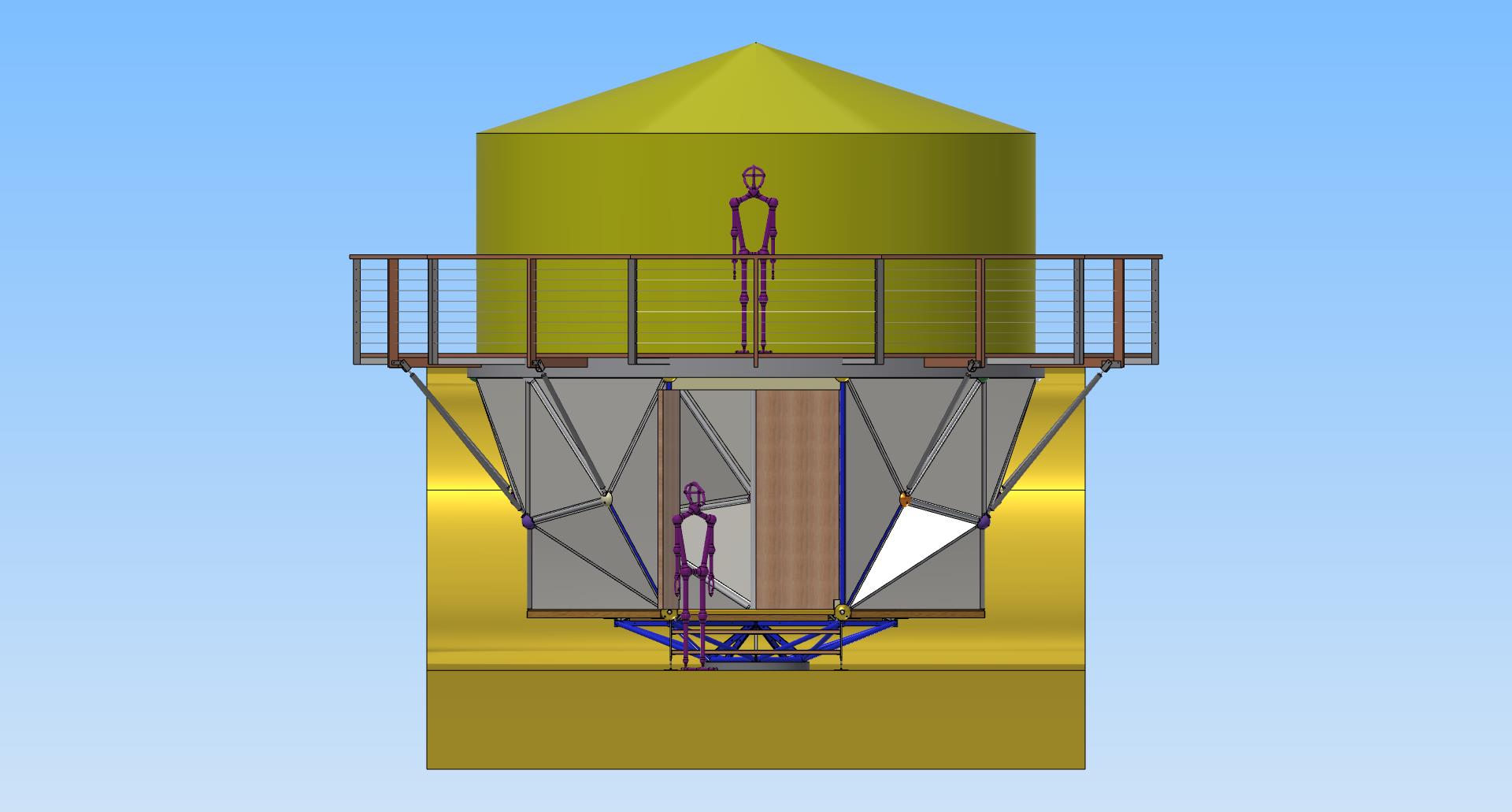 My building system, “the sphere of OZ”, a tool that I have conceived and designed for erecting a geodesic sphere is eminently suitable for a construction of most any other type of a building/structure. One among them is a “dish”, an inverted geodesic dome, designed to serve as a foundation/platform to carry a yurt, a “glamping” dome or a tent, and it is intended especially for an environment where the terrain is uneven, hilly or wet, under which conditions the current/conventional wood platforms/decks are usually more hassle and expense than the yurts them selves, while the dish is simultaneously providing an additional living, storage, utility space. There will be no need for a ground clearing, excavation and on site construction work to install the dish foundation/platform other than making room and anchor it by means that will be determined during the design stages.